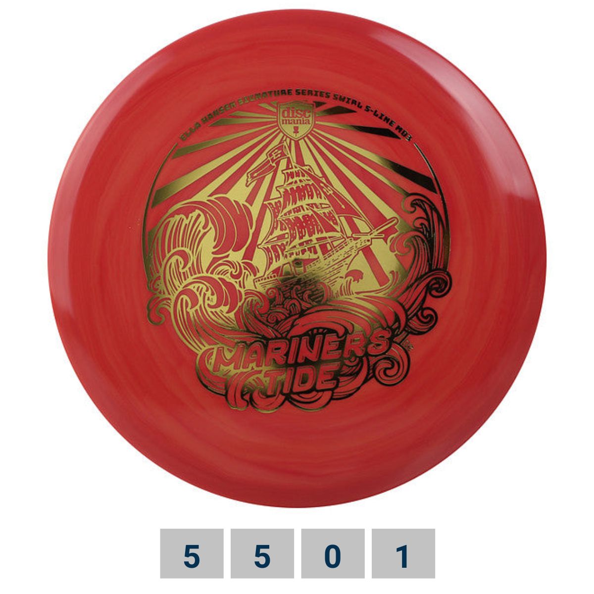 Disc golf disc Discmania Mariner’s Tide – Ella Hansen Signature Series Swirl S-Line MD3 is a versatile and dependable midrange designed for players who value control, glide, and consistent flight. The official flight numbers are 5 | 5 | 0 | 1, making it a strong choice for straight throws, clean line shaping, and a smooth, predictable finish.