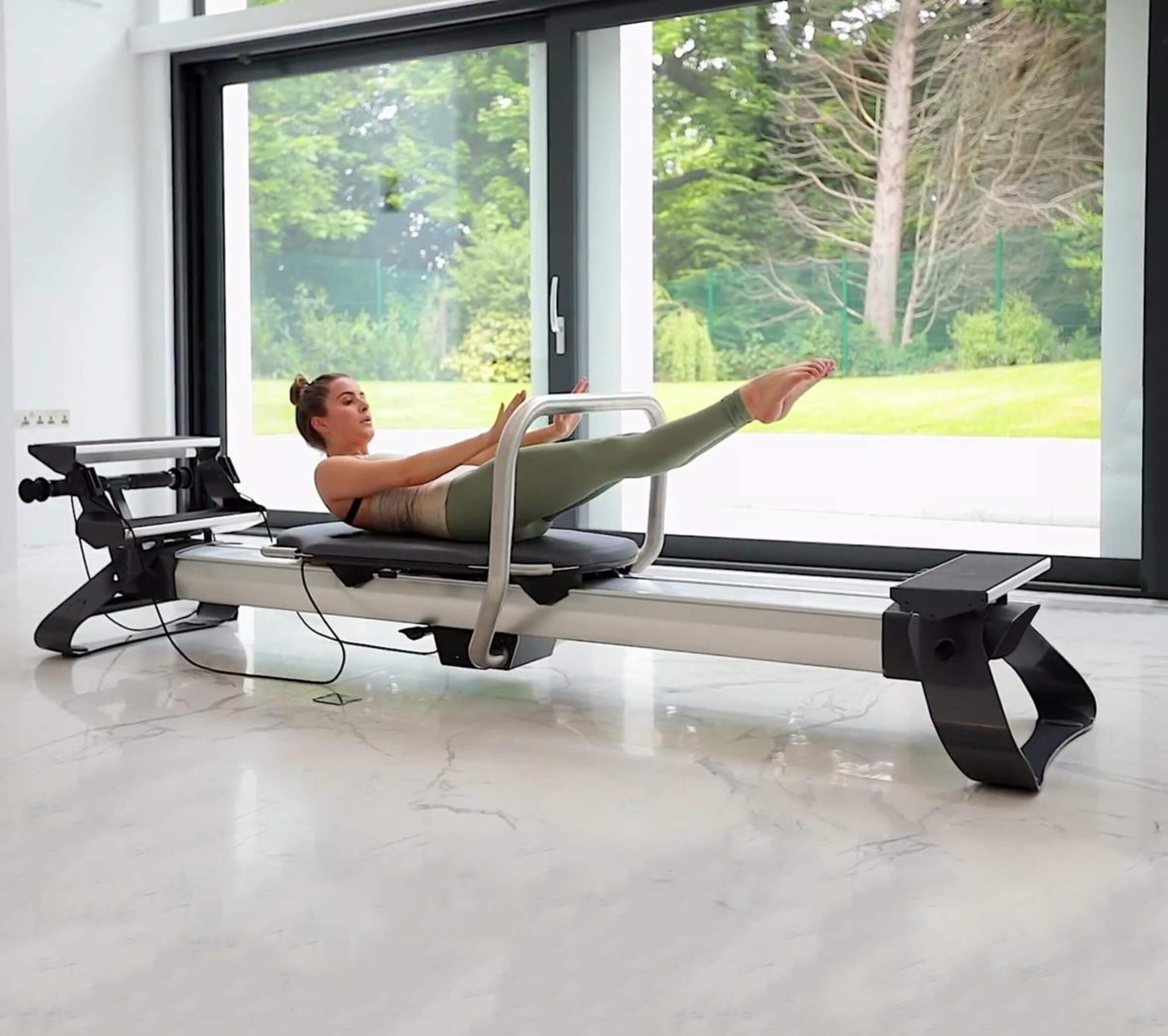 This is the first reformer with an integrated Pilates chair.