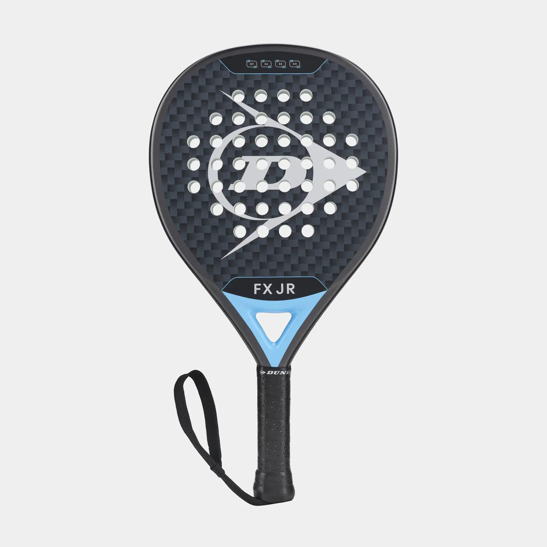 Padelio raketė Dunlop FX JNR 335 g – puikus pasirinkimas jauniems žaidėjams ir pradedantiesiems, ieškantiems lengvos, patogios ir valdomos raketės. Šis modelis sukurtas taip, kad padėtų lengviau mokytis žaidimo technikos bei lavinti smūgių tikslumą.
